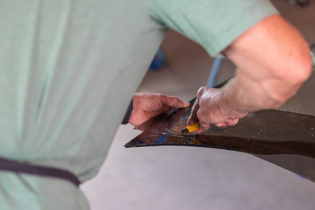 Next, we will take measurements on all the windows to cut the film precisely to fit. Ensuring the tint will cover the entire window leaving no holes for UV light to shine through.
